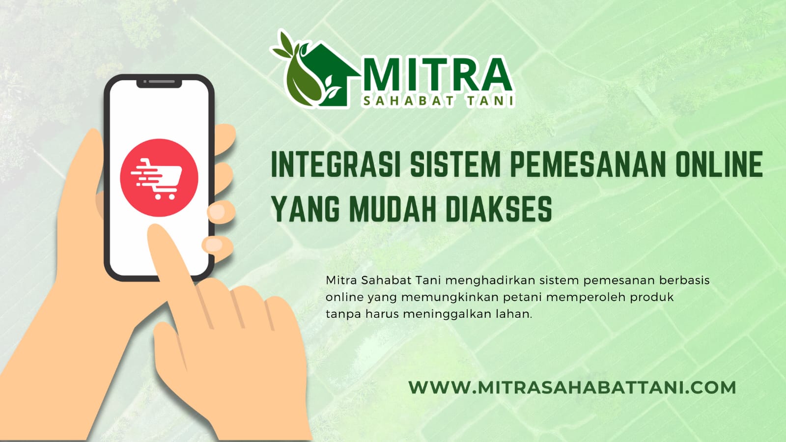 Transformasi digital dalam sektor pertanian telah membuka akses yang lebih luas bagi petani untuk mendapatkan produk pertanian secara efisien. Menanggapi kebutuhan tersebut, Mitra Sahabat Tani menghadirkan sistem pemesanan berbasis online yang memungkinkan petani memperoleh produk tanpa harus meninggalkan lahan. Dengan berbagai kanal digital yang terintegrasi, setiap pembelian kini dapat dilakukan dengan lebih cepat, mudah, dan tepat sasaran.