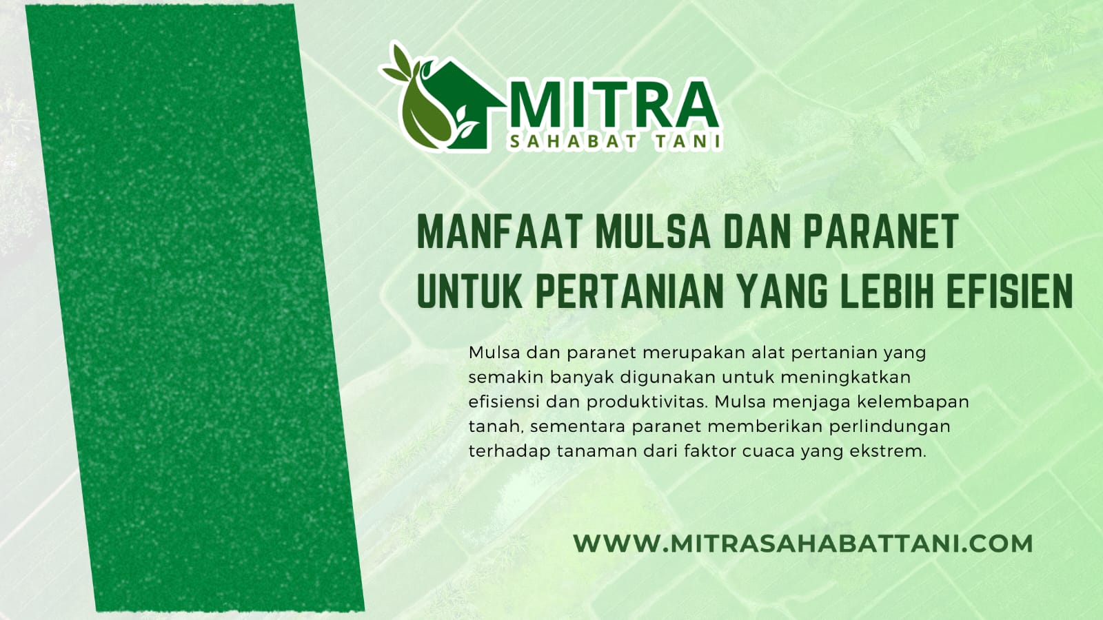 Mulsa dan paranet merupakan alat pertanian yang semakin banyak digunakan untuk meningkatkan efisiensi dan produktivitas. Mulsa menjaga kelembapan tanah, sementara paranet memberikan perlindungan terhadap tanaman dari faktor cuaca yang ekstrem.